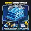 - Double Battery - Double Endurance:It comes with 2 packs of 4.0Ah 21V rechargeable Li-ion batteries .Alternating use of dual batteries can trim trees for at least 120 minutes. The product is specially designed with a visual LED screen, which can visually see the remaining power without worrying about the trouble caused by low power.
