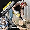 - Comprehensive Safety Protection:Features dual safety locks (trigger lock + power lock) to prevent accidental activation, an anti-splash baffle to block wood chips,and anti slip handle ensures safe grip.In addition, gloves and goggles are prepared for you to ensure that you carry out tree pruning work in a safe environment