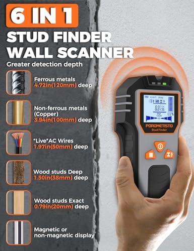 6-in-1 Stud Finder Wall Scanner, POROMETISTO DSF01 Wall Stud Finder with Electric Wire Finder, Deep Scan Stud Sensor for drywall, Wood, Plaster Walls, Metal, AC Wire, Magnetic, Joists, Pipes