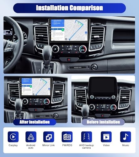 - 【Wired & Wireless Carplay & Android Auto】In dash GPS car stereo for Ford Transit 350 2022 is compatible with wired/wireless Carplay and Android Auto, users can make voice control to access car stereo and use map navigation, make phone call, play music and send, receive messages etc. (Note: Huawei mobile phones are not supported)