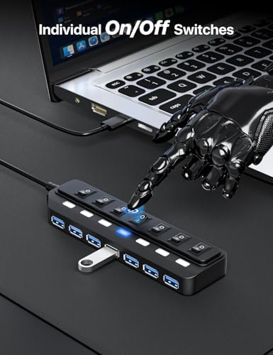 USB Hub 7 Port,USB 3.0 Hub Splitter with Individual On/Off LED Switches, USB Hub for PC, 5Gbps HighSpeed Data for Laptop, Mac, PC, Desktop, PS5, Xbox and More