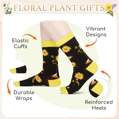 HAPPYPOP Sunflower Gifts For Women Girls - Funny Sunflower Socks, Sunshine Gift For Flower Lovers, Plant Sock For Gardening Enthusiasts