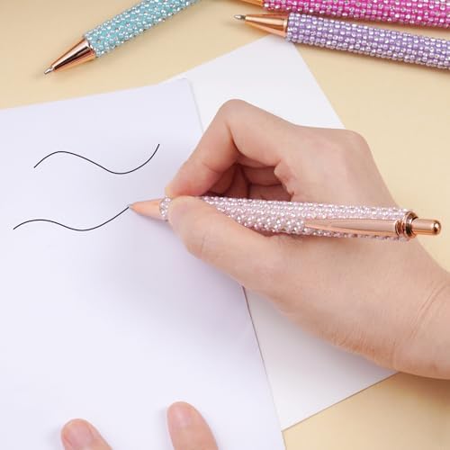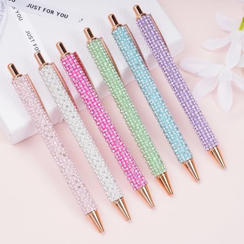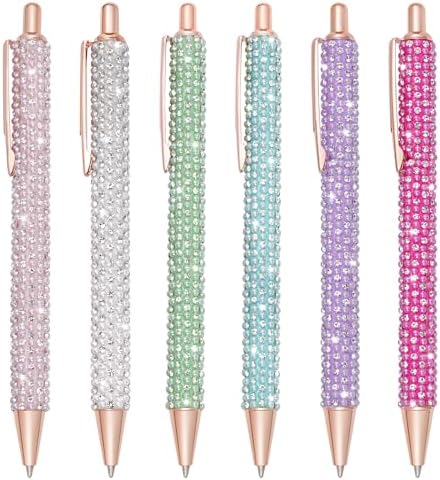 jiebor 6pcs Fancy Pens Glitter Cute Fun Pretty Rhinestones Metal Retractable Ballpoint Pens for Women Teacher Writing Business Office School Gift Supplies