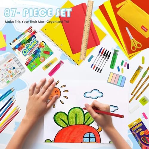 87 PCS Back to School Supplies for Kids Grades K-8, Kindergarten/Elementary School Supplies Kit for Girls/Boys, School Essentials Includes Folders, Notebooks, Pencils, and More