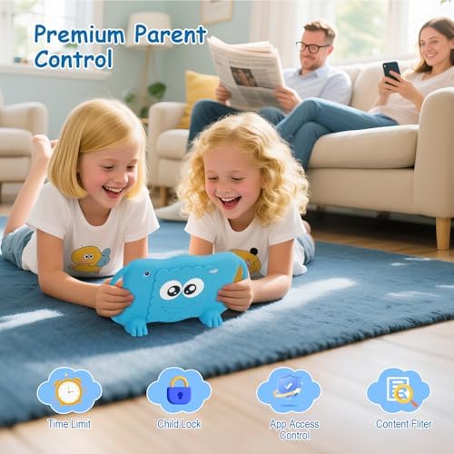 Kids Tablet 7 Inch Tablets for Kids 3-12, 32GB Toddler Tablet with Dual Camera, Parental Control, Solid Case, WiFi, GMS, YouTube, Netflix, Android Learning Software Installed(Blue)
