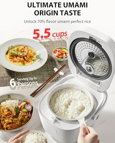 - Ultra Capacity and Thick Pot-The 5.5 Cup uncooked capacity can meet the food needs of a family of 6. 3.1mm thick Pot compatible with durable inner pot with PFAs free ceramic coating ,It can also be safely used by children. Both of all making it an essential rice cooker for every household.