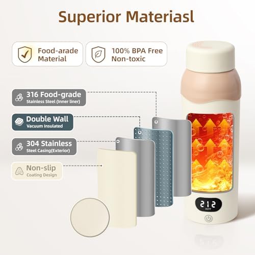 - Portable Food-grade Electric Kettle: This portable 500ml electric kettle features food-grade 316 stainless steel inner liner and is free of bisphenol A, making your drinking water healthier. The travel electric kettle is made with a durable and corrosion-resistant 316 stainless steel inner which is easy to clean. Perfect for travel, allowing you to enjoy a hot drink anytime, anywhere.