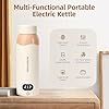 - Portable & Lightweight and Leak-proof: The portable kettle features 360° rotating leak-proof design. Strong sealing that allows you to carry it safely without worrying about leaks.The small mini electric kettle is only 9.4 inches tall, weighs 1.1 pounds and has a capacity of 500 milliliters /16.91 ounces. This portable travel electric kettle comes with a comfortable detachable handle and is very suitable for carrying. No matter where you go, you can enjoy safe and healthy personal drinking water.