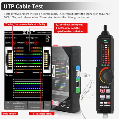 - 【RJ45 TDR Cable Test & Length Measurement】Cable tester is eaily to test cable’s pair status, length, attenuation reflectivity, impedance, skew, and other parameters. Also, you can measure opens of network cables, max measurement length up to 3000 meters. Creating test report.
