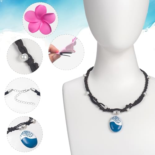 Princess Costume Accessories Hawaiian Flowers Garland Headband Flower Clips Necklace Boho Shell Anklet Halloween Party Favors Dress Up Accessories