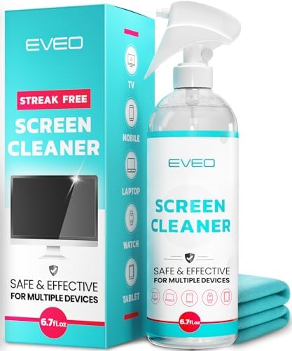 - ✅ Easy-to-Use Screen Cleaner Kit + microfiber cleaning cloth- The EVEO Screen Cleaning Kit will easily be your new favorite tool when it comes to taking care of the things you love most, quick and easy solution for a streak-free screen. Simply screw on the sprayer gun on the screen cleaner bottle. Spray the cleaning liquid onto the microfiber cloth, then wipe the screen until desired cleanliness & shine is achieved.