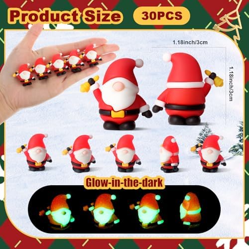 - Christmas Mini Gnomes Bulk: with a pack of 30 pcs luminous Christmas gnomes, each of gnome is 3 x 3 cm/ 1.18 x 1.18 inch, these gnomes make splendid Christmas ornaments, party favors, or craft decorations, ensuring you have enough to sprinkle the holiday cheer all around