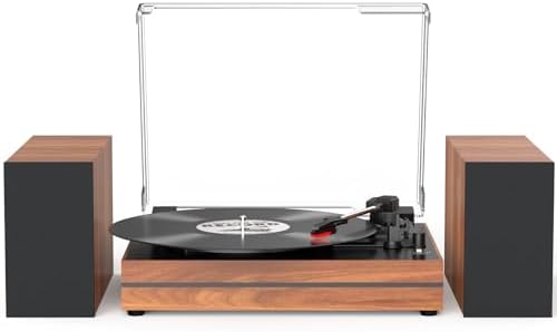 Record Player with Bulit-in Four Speakers Brown and Record Player with Two External Speakers Walnut Red