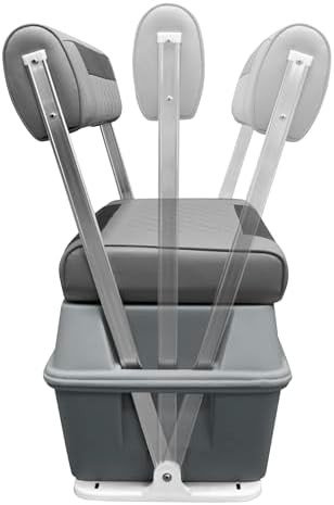 Wise DLX156 DLX Series Swingback 70 Quart Cooler Seat; Perfect style and color match with Wise DLX Series pontoon furniture. Roto-molded construction double wall insulated cooler with center drain hole. Injection molded plastic seat bottom and back rest substrate. Flip-flop back rest provides flexible seating positions. Upholstered hinged seat cushioned with high compression foam. 28 oz. marine grade vinyl upholstery featuring mixed texture accents and diamond pattern embossed details. Anodized aluminum swing arm brackets. Injection molded plastic mounting bracket. Replacement cushions: DLX156-BS.