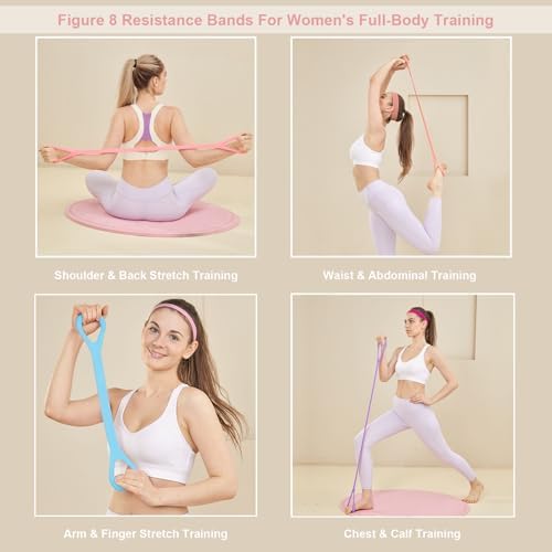 3 Pcs Figure 8 Resistance Bands for Women, Arm, Shoulder, Back, Leg, Pilates, Yoga Stretching