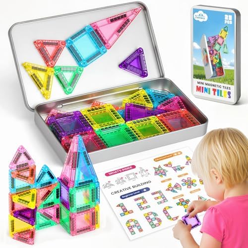 - 【Portable Mini Magnetic Tiles】: Compact and portable, these mini magnetic tiles feature an integrated magnetic board and storage case—perfect magnetic travel toys for keeping kids entertained on airplanes, road trips, restaurants, or while waiting in line. A must-have among travel essentials for kids