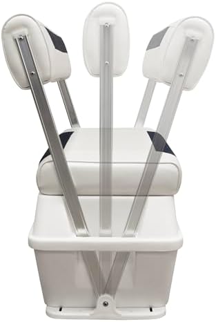 Wise DLX156 DLX Series Swingback 70 Quart Cooler Seat; Perfect style and color match with Wise DLX Series pontoon furniture. Roto-molded construction double wall insulated cooler with center drain hole. Injection molded plastic seat bottom and back rest substrate. Flip-flop back rest provides flexible seating positions. Upholstered hinged seat cushioned with high compression foam. 28 oz. marine grade vinyl upholstery featuring mixed texture accents and diamond pattern embossed details. Anodized aluminum swing arm brackets. Injection molded plastic mounting bracket. Replacement cushions: DLX156-BS.