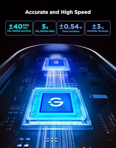 - Fast & Accurate: This CO₂ monitor boasts an accuracy of ±(40ppm + 5%), a fast 5s refresh rate, and a built-in air pressure sensor, ensuring reliable performance at any altitude. It helps prevent headaches and drowsiness while improving sleep quality and enhancing concentration.