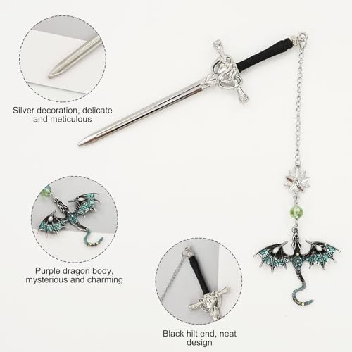 2 Pieces Dragon Sword Bookmark, Metal Bookmark, Fantasy Metal Bookmarks for Book Lovers Novel Fans Boys Readers Student Teacher School Accessories