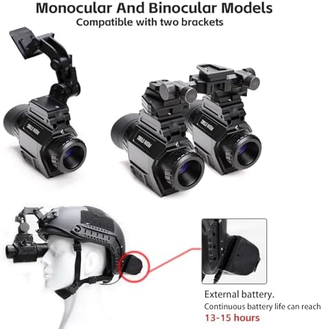• 【DUAL MOUNTING FLEXIBILITY】Designed as helmet mounted night vision goggles or head mounted night vision system. Compact size (115x74x52mm) and 240g weight enable agile movement