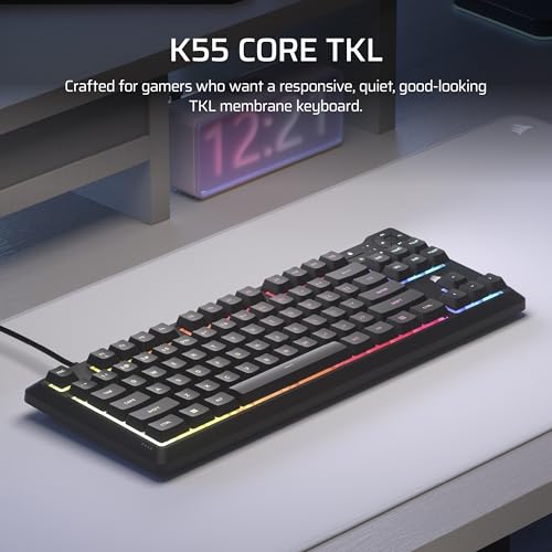 Corsair K55 CORE TKL RGB Gaming Keyboard – Tenkeyless, 8-Zone RGB, Quiet Membrane Keys, Spill Resistant, Media Keys, 1000Hz Polling – NA Layout – Black