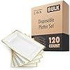(120 Pcs) Premium White and Gold Plastic Serving Tray, Plastic Serving Platter Disposable, White Rectangle Party Trays and Platters for Fruit, Dessert, Cookies, Appetizers, Holiday Parties