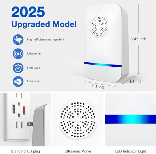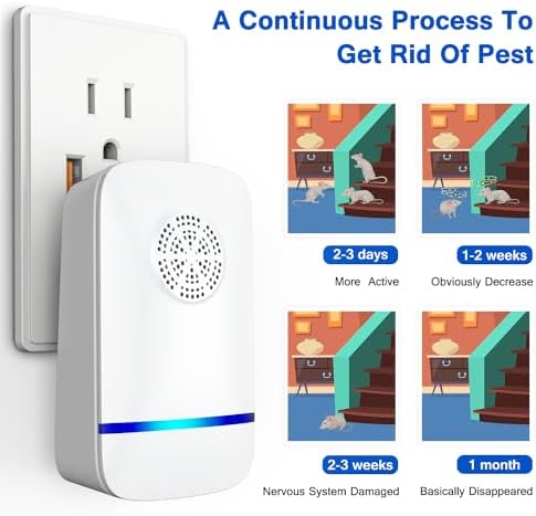 - Continuous, Hassle-Free Operation: Simply plug in the device and let it work 24/7 to keep pests at bay. It's an efficient way to repel mice, spiders, cockroaches, and other common pests. Ideal for use as a rodent repellent indoor and pest repellent ultrasonic plug-in