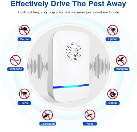 - Effective Ultrasonic Technology: This ultrasonic pest repeller uses changing ultrasonic sound waves to push pests away from your home—not kill them. It helps keep mice, roaches, spiders, and mosquitoes out of your living space in a clean and humane way. No poisons, no traps, no cleanup. Just a safer, low-maintenance way to protect your home and family