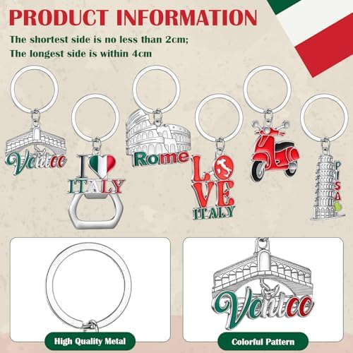 24 Pcs Italy Keychains Metal Key Ring Souvenir Bulk Bottle Opener Keyring Italy Theme Gifts