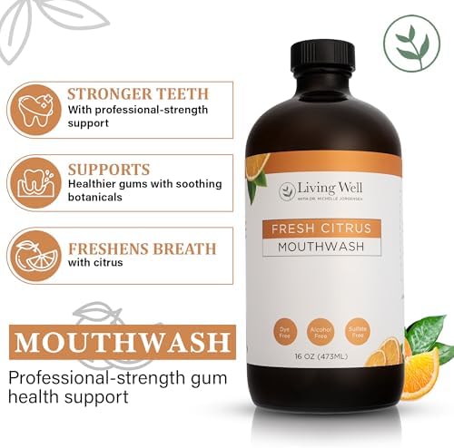 Living Well with Dr. Michelle Fresh Citrus Remineralizing Mouthwash | Hydroxyapatite & Colloidal Silver Formula | Alcohol-Free, Natural & Organic | Fluoride-Free Mouth Rinse