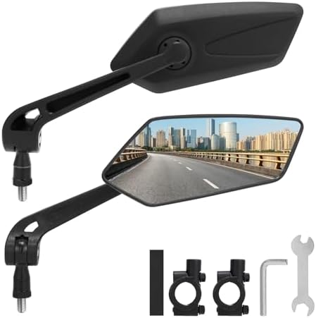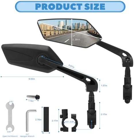 - HIGH-QUALITY MATERIAL: The Bicycle Rearview Mirror Is Made Of High-Strength Abs, Which Is Durable And Impact-Resistant. The Surface Of The Bicycle Rearview Mirror Is Made Of High-Quality Glass With High Clarity And Good Reflection. Aluminum Alloy Clamps Ensure That The Bicycle Rearview Mirror Is Stable And Does Not Shake During Riding.