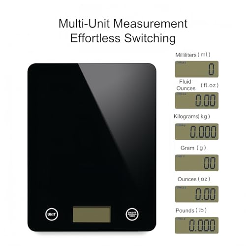 Digital Kitchen Scale, Food Scale with Tempered Glass, Grams and Ounces, 1g High Accuracy for Baking, Cooking, Food (Black Glass)