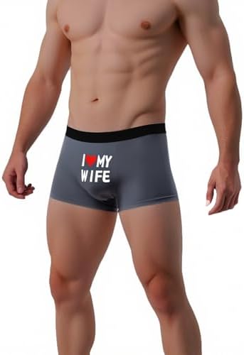 Men's Funny Love My Wife Seamless Boxer Briefs Breathable Stretch Fabric Comfortable and Supportive for Running and Gym