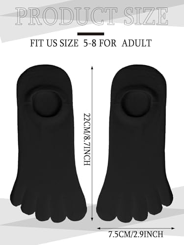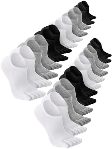 Features: No show toe socks: Made of breathable cotton, these socks are designed to fit snugly, and feature a five toe design that not only stays hidden in your shoes, but also keeps your feet comfortable. You'll feel the difference once you put them on. More comfortable: The no show toe socks design allows your toes to spread naturally, reducing friction between your toes and between your toes and the shoe. This revolutionary feature provides unmatched comfort. Specifications: Material: cotton Color: multiple colors Size: 5-8 Package includes: 12 Pairs toe socks Notes: Manual measurement, please allow slight errors on size. The color may exist a slight difference due to different screen displays