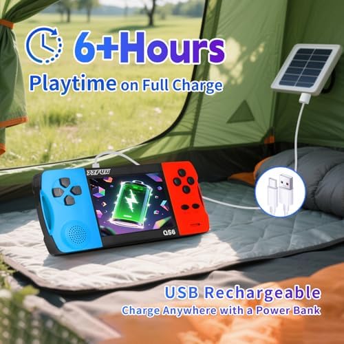 - ★Retro Vibes with Rechargeable Power★ Introduce your child to the classic fun of retro handheld games with a modern twist! Packed with nostalgic arcade-style games, this upgraded version includes a rechargeable 1800mAh battery for 6+ hours of nonstop play. Enjoy timeless gaming joy, whether it’s your child’s first console or a throwback moment you share together.