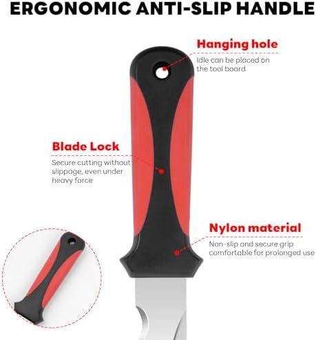 - 【Insulation Knife】 Expertly crafted from premium rust-resistant stainless steel, this knife features a unique double-sided blade with specialized serrations. Each side is engineered for different tasks: one aggressively tears through dense insulation like rockwool and fiberglass, while the other ensures smoother cuts in sod and foam