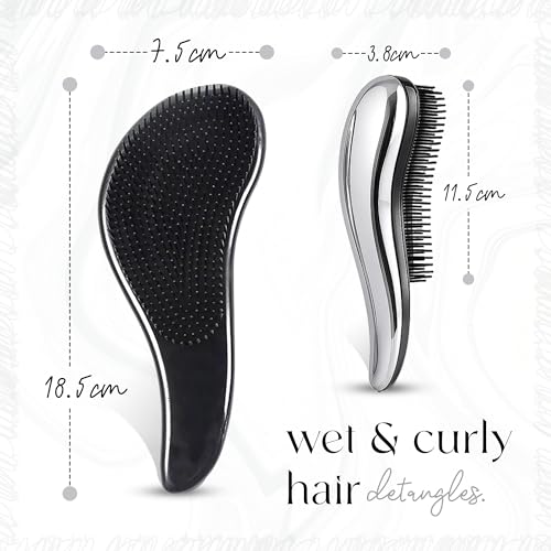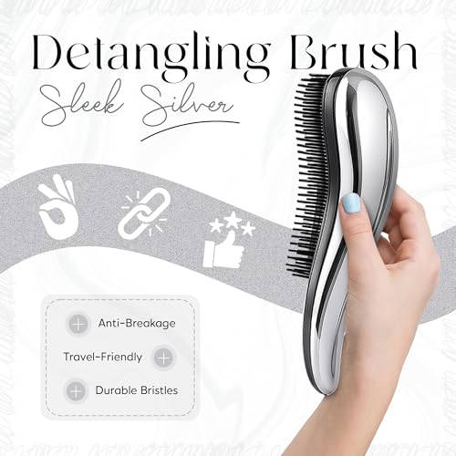 Professional Detangling Hair Brush, Silver and Gold, Pain-Free, Ergonomic Design for Wet, Dry, Curly, Straight, Thick Hair, (Silver)