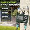- 【Simple Watering Setup】Supports both 12/24-hour formats, with automatic watering duration ranging from 1 minute to 12 hours and customize the frequency from every 1 to 12 hours, or 1 to 7 days.And manual watering options. Whether you need short-term watering or long-term irrigation, this timer has you covered. Its IP54 waterproof rating ensures durability in various outdoor conditions.