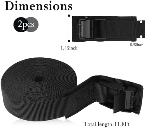 • Dual-Pack Utility: Included 2 heavy-duty cam buckle straps (11.8 ft × 0.98 in) engineered for multiple securing scenarios—from luggage and tool transport to kayak, boat, and roof rack fastening. Adapts seamlessly to car trunks, camping gear, outdoor adventures, and home storage organization