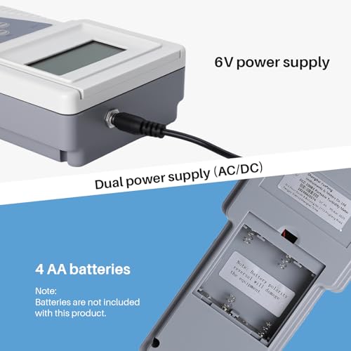 - Lab-to-Field Flexibility: Ultimate portability with dual power: 4 standard AA batteries for on-site testing or 6V AC power for extended lab use. Low battery indicator ensures you're always ready, perfect for testing anywhere.