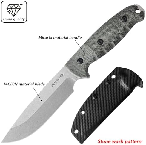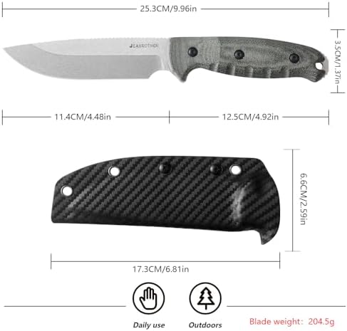 - Mikta handle: Adopting an ergonomic Mikta handle with a sheathed fixed blade, the hunting knife is waterproof, wear-resistant, and anti-oxidation, ensuring long-lasting performance under harsh conditions; The textured surface of the handle enhances grip without sacrificing comfort, providing a safe grip and reducing hand fatigue during prolonged use