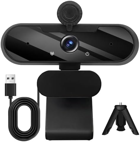 USB HD 1080P Video Webcam and Wide Angle Camera with Built-in Microphone and Rotatable Tripod,for Laptop Computer or Desktop PC,Great for Live Streaming.Calls.Video Conferencing(Black)