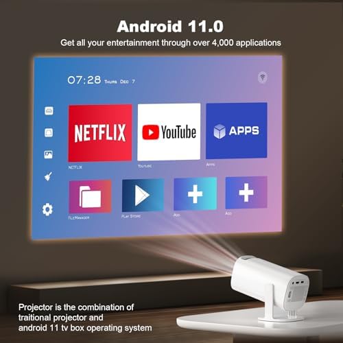 - 【Android TV Projector with Full App Ecosystem】 Access YouTube and thousands of apps through Google Play. The intuitive interface transforms this projector with WiFi and Bluetooth into a smart entertainment hub that's easier to use than most streaming sticks