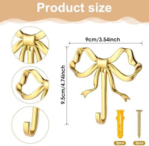 - Versatile Use: Ideal for hanging coats, hats, towels, and more, these bow wall decor hooks are suitable for various spaces, including bathrooms, living rooms, and bedrooms. The gold wall hook offers practical storage solutions.