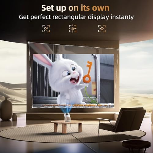 - Electric-Focus for Instant Clarity: Equipped with electric-focus and auto vertical keystone correction, this smart projector ensures a clear, perfectly aligned image every time. Whether it’s a movie night or a fun cartoon session for kids, enjoy a perfectly clear picture with no manual adjustments needed.