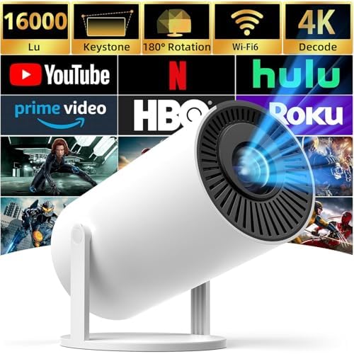 【Electric Focus】Smart Projector 4K Support, Portable Projector with WiFi 6 and Bluetooth 5.4, Smart Proyector, 5W Soundbase Speaker, 180° Rotation for Home Theater Ultra