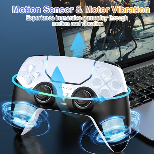SWVOE Controller for P5, Wireless P 5 Remote Compatible with P 5/PC/Steam Deck, Support Programmable, Vibration, 6-Axis Sensor, Speaker, Mute, and Audio Jack (White)
