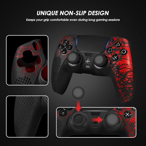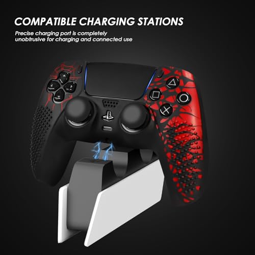 - ANTI-SLIP COMFORT DESIGN : This controller Cover Case for PS5 Controller is designed with raised particles on the front and grooves on the back, greatly improving the joystick's grip and control and maintaining a comfortable grip for extended gaming sessions.