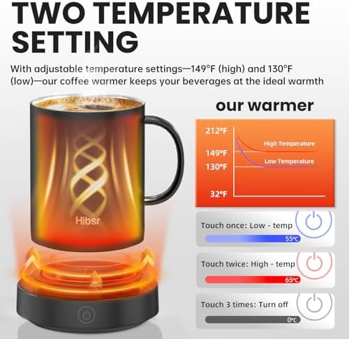 - Dual-Temperature Settings for Versatile Use - Customize your warmth with two temperature options: blue light for about 55°C/130°F (perfect for delicate beverages like white tea or warm milk) and red light for about 65°C/149°F (ideal for coffee or black tea). Enjoy drinks exactly how you love them.
