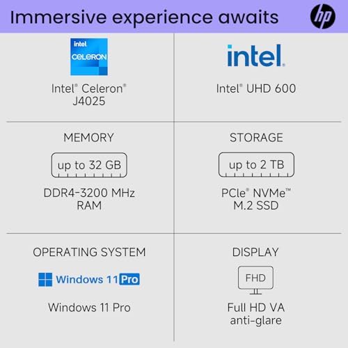 - Power Your Everyday: HP 21.5 Inch All-in-One Desktop Computer, powered by an Intel Celeron J4025 processor (2 cores, 2 threads, up to 2.9 GHz) and featuring 32GB of RAM, is built for efficiency. HP all in one desktop computer enables smooth multitasking, letting you handle various applications with ease. These features make the hp all in one desktop computer a dependable centerpiece for your home or office